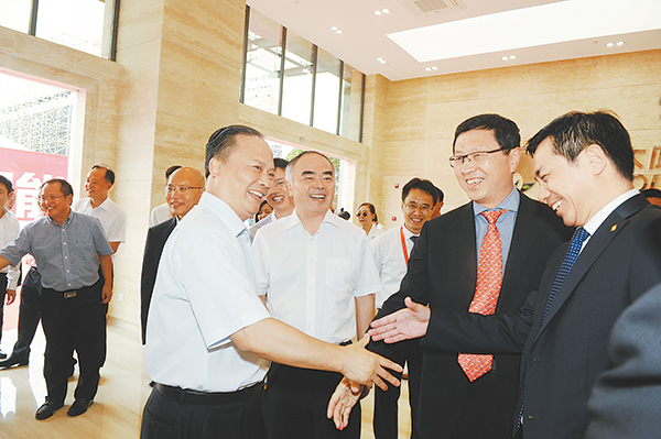 劉漢元主席與陽光電源股份董事長曹仁賢、協鑫(集團)控股副董事長兼協鑫集成總裁舒樺等親切交流