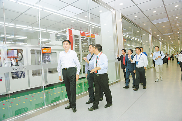 本次嘉賓們的蒞臨,不僅帶來對通威35年華誕的祝福,更共同見證了世界首條工業4.0高效電池生產線的正式投產。9月20日上午,重磅嘉賓們相繼參觀了通威集團總部的體驗中心、通威太陽能“智能制造”工廠,詳細了解了通威綠色雙主業發展現狀及成果、通威“漁光一體”創新模式。當天下午,在十一屆全國政協常委、通威集團董事局劉漢元主席的陪同下,溫氏股份名譽董事長溫鵬程、陽光電源股份董事長曹仁賢、環太集團董事長王祿寶等重磅嘉賓實地參觀了位于通威太陽能公司的世界首條工業4.0高效電池生產線。