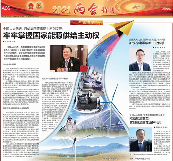 “2021年的‘兩會’熱點一定是碳中和,整個碳中和實現路徑和政策配套將是討論的一個主旋律。”劉漢元代表對記者表示。
